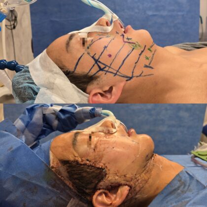 Today, we performed a revision face and neck lift, including a platysmaplasty or pelican surgery at our clinic for a patient who undergone the same procedures in Korea.